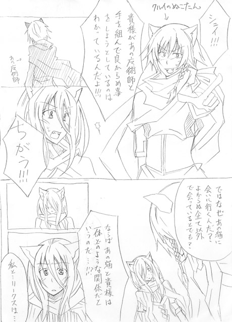 つい朝コノエと間違えてリークスに毛づくろいしてしまって(しかも全身)、コノエに目撃され、昼ドラ的展開が。